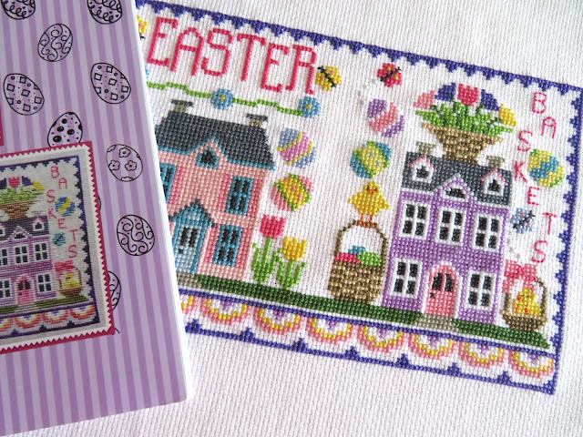 A bit out of season, but I've just finished stitching this lovely cross stitch pattern - Easter Houses by Waxing Moon Designs.